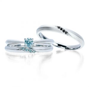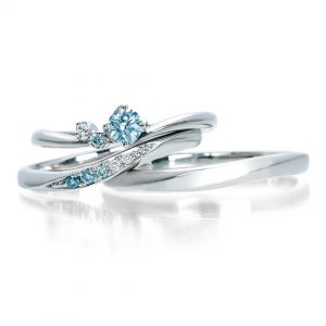 上から)シェリ ¥211,200 オリエンタルビューティー ¥178,200 ローブドゥマリエ ¥209,000 全てPt/センターダイヤモンド:トリートメントブルーダイヤモンド0.14~0.16ct